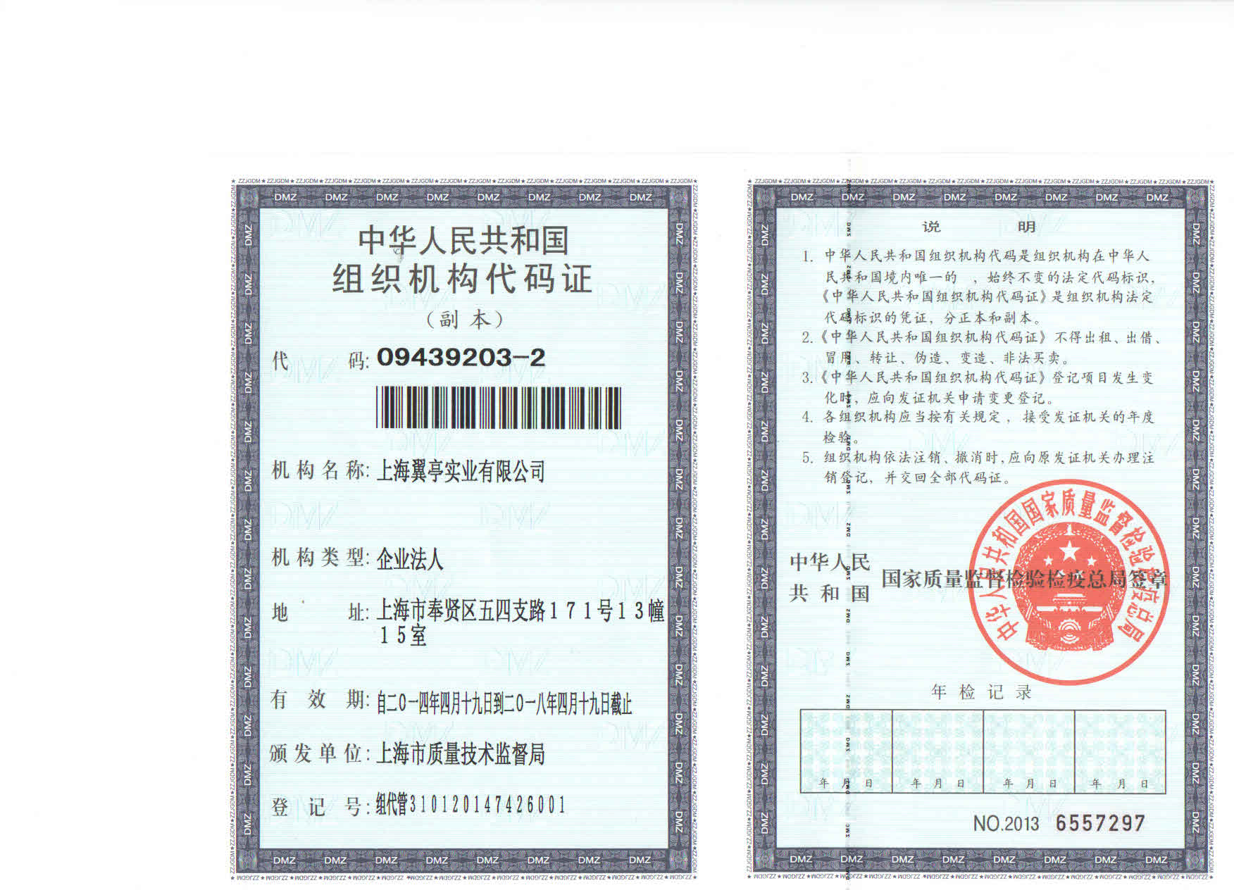 翼亭上海崗?fù)そM織機(jī)構(gòu)代碼證